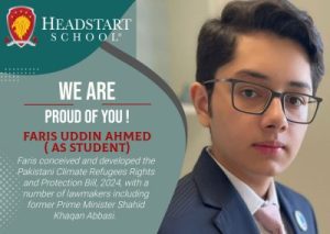 Name: Faris Uddin Ahmed( AS student)Work: Pakistani Climate Refugees Rights and Protection Bill, 2024Commencement of Work: March 2024Date on which Bill was tabled in the National Assembly: Oct. 22, 2024 Faris Ahmed’s interest in climate advocacy has been impassioned. It … Continue reading Faris conceived and developed the Pakistani Climate Refugees Rights and Protection Bill.
